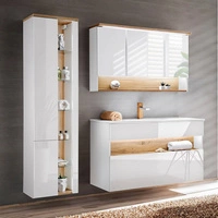Zestaw mebli łazienkowych Bahama biały połysk / dąb wotan nowoczesne szafki wiszące do łazienki wzbogacone o oświetlenie LED