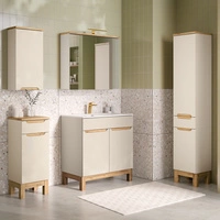 Zestaw mebli łazienkowych Bali beżowy / dąb wotan nowoczesne szafki do łazienki stylowe frezowane uchwyty stabilna podstawa