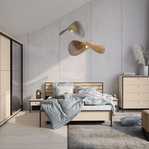 Zestaw mebli do sypialni Enna beżowy / czarny / dąb natura nowoczesna konstrukcja mebli z klimatycznym oświetleniem subtelne uchwyty