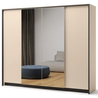 Szafa z lustrem Enna 250 cm beżowy / czarny elegancki design idealna szafa do sypialni lub garderoby klimatyczne oświetlenie LED