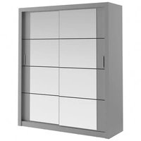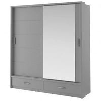 Szafa przesuwna z lustrem Arti 180 cm szara pojemna szafa do przedpokoju drzwi szafy wykończone lustrami w ciekawej konfiguracji