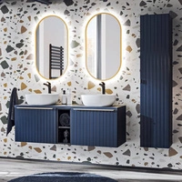 Zestaw mebli łazienkowych Santa Fe granatowy / czarny zestaw mebli z szafkami pod umywalki nablatowe ozdobne ryflowanie na frontach