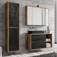 Zestaw mebli łazienkowych Hampton dąb huton / ciemny beton stylowe szafki łazienkowe o prostej formie podkreślone kontrastową kolorystyką