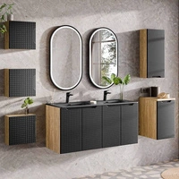 Zestaw mebli łazienkowych Luxor dąb olejowany / czarny designerskie szafki łazienkowe oryginalne trójwymiarowe ryflowania na frontach