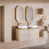 Zestaw mebli łazienkowych Luxor dąb olejowany / beżowy designerskie szafki łazienkowe oryginalne trójwymiarowe ryflowania na frontach