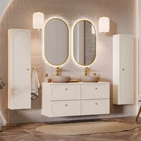 Zestaw mebli łazienkowych Donna Sand beżowy eleganckie szafki łazienkowe z dekoracyjnym obłym frezowaniem na frontach złote uchwyty