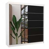 Szafa przesuwna z lustrem Oliver 200 cm czarny / biały pojemna szafa do sypialni z ozdobnymi listwami ergonomiczny układ wnętrza