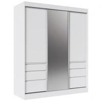 Szafa przesuwna z lustrem Haidar 180 cm biała funkcjonalna i użytkowa szafa z szufladami doskonała do mniejszych pomieszczeń