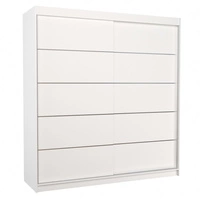 Szafa przesuwna Esteva 200 cm biała praktyczna i pojemna szafa do sypialni fronty wykończone poziomymi srebrnymi listwami