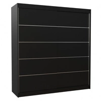 Szafa przesuwna Esteva 200 cm czarna praktyczna i pojemna szafa do sypialni fronty wykończone poziomymi srebrnymi listwami