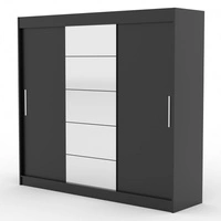 Szafa przesuwna z lustrem Erwin 235 cm czarna pojemna i stylowa szafa do sypialni z wewnętrznymi szufladami solidne wykonanie