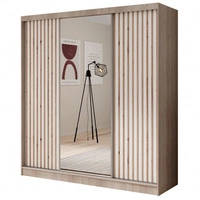 Szafa przesuwna z lustrem Ida 200 cm dąb sonoma jasny / biały stylowe lamele zdobiące drzwi szafy wnętrze wyposażone w pojemne szuflady