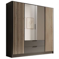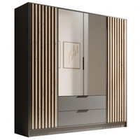 Szafa z lustrem Neri 200 cm grafitowa stylowe lamele zdobiące drzwi szafy pojemne szuflady uchwyty krawędziowe
