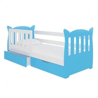 Łóżko Lena 75x160 cm niebieski / biały komfortowe łóżko z materacem do pokoju dziecięcego wyposażone w barierkę ochronną i szuflady
