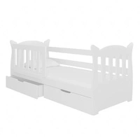 Łóżko Lena 75x160 cm białe komfortowe łóżko z materacem do pokoju dziecięcego wyposażone w barierkę ochronną i pojemne szuflady