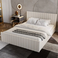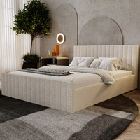 Łóżko tapicerowane Sobral 160x200 kremowe komfortowe łóżko z pojemnikiem na pościel gustowny zagłówek i zanóżek
