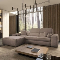 Narożnik z funkcją spania Viano IX jasny brąz lewostronny stylowy narożnik z pojemnikami na pościel idealny mebel do dużego salonu