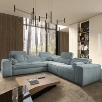 Narożnik z funkcją spania Viano III Lux szary błękit lewostronny nowoczesny narożnik z wysuwanym podnóżkiem pojemnik na pościel