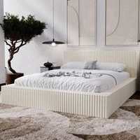 Łóżko tapicerowane Tilo 180x200 kremowe nowoczesny design łóżko z pojemnikiem na pościel z komfortowym zagłówkiem tkanina z wyrazistymi prążkami