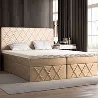 Łóżko kontynentalne Empoli 160x200 beżowe w nowoczesnym skandynawskim stylu z tapicerowanym zagłówkiem