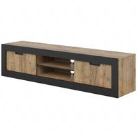 Szafka RTV Tudor 180 cm dąb samdal / czarny z drzwiami przesuwnymi idealna do wnętrz w stylu industrialnym do salonu lub pokoju dziennego