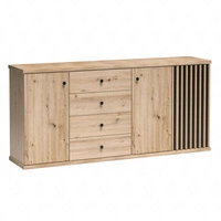Witryna Cali 86 cm dąb artisan / czarny stylowa witryna do salonu drzwi witryny ozdobione lamelami w kolorze dębu czarne uchwyty pojemne szuflady