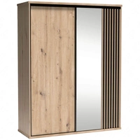 Szafa przesuwna z lustrem Cali 179 cm dąb artisan / czarny stylowa szafa z lamelami w kolorze drewna idealna szafa do sypialni czy garderoby
