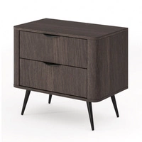 Szafka nocna Veris dąb dunin / czarny nowoczesny design szafki do sypialni zaoblony kształt modne uchwyty krawędziowe metalowe nogi