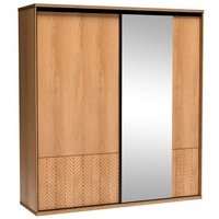 Szafa przesuwna z lustrem Fonti 199 cm dąb karmel nowoczesny design mebla drzwi szafy ozdobione dekorem jodełki