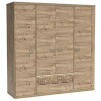 Szafa Natural 196 cm dąb ribbeck pojemna szafa do sypialni szuflada ozdobiona drewnianą listwą subtelne oświetlenie ledowe