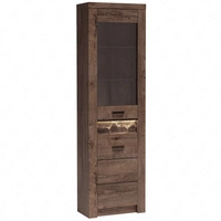 Witryna Indiana 56 cm jesion ciemny stylowa witryna do salonu elementy z bezpiecznego szkła ozdobna deska na froncie witryny oświetlona LED