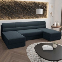Narożnik z funkcją spania Fogu U niebieski komfortowy i stylowy narożnik o prostym designie sztruksowa tkanina pojemnik na pościel