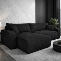 Narożnik z funkcją spania Fiesta XL czarny uniwersalny w ustawieniu narożnik z pojemnikiem na pościel stylowa sztruksowa tkanina