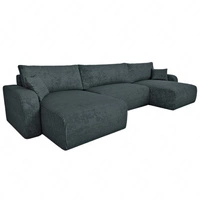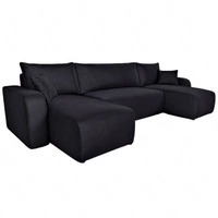 Narożnik z funkcją spania Fiesta U czarny stylowy narożnik o ciekawym kształcie wytrzymała pluszowa tkanina pojemnik na pościel