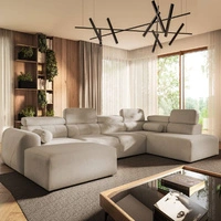 Narożnik z funkcją spania Cantare VIII ciemny beż lewostronny gustowny narożnik z regulowanymi zagłówkami pojemniki na pościel
